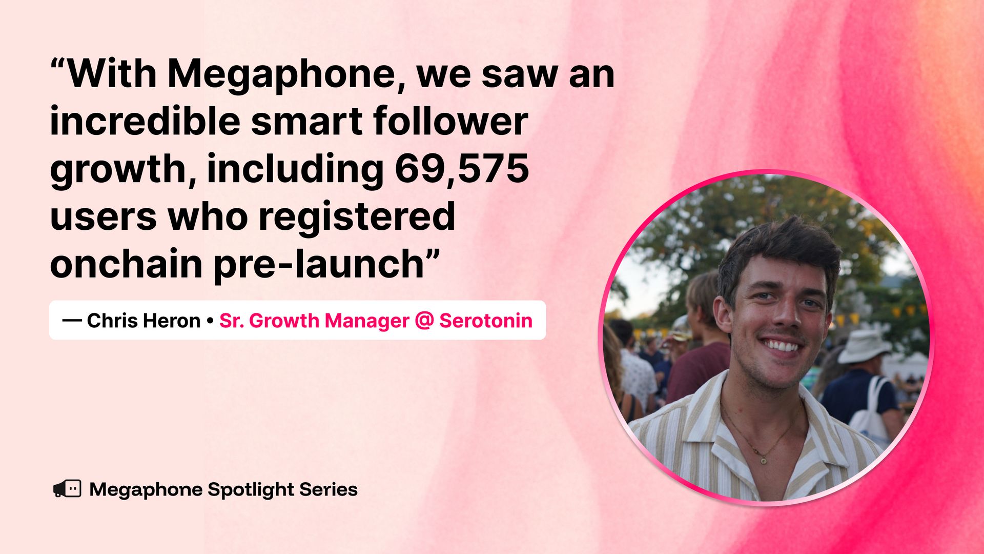 “With Megaphone, we saw an incredible smart follower growth, including 69,575 users who registered onchain pre-launch.” — Chris Heron, Sr. Growth Manager @ Serotonin