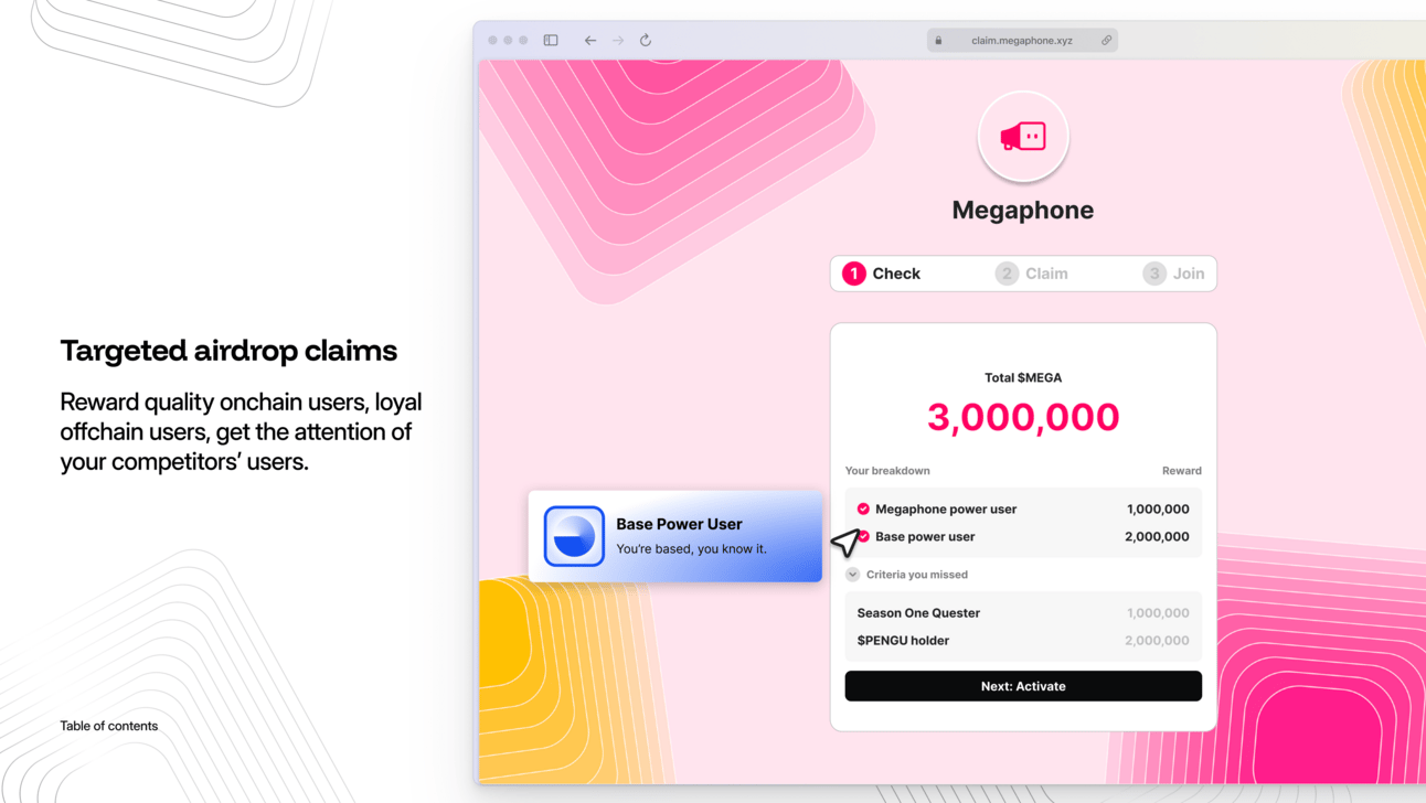 Drive your core KPIs — Turn airdrop claims into measurable product growth using Megaphone’s integrations.